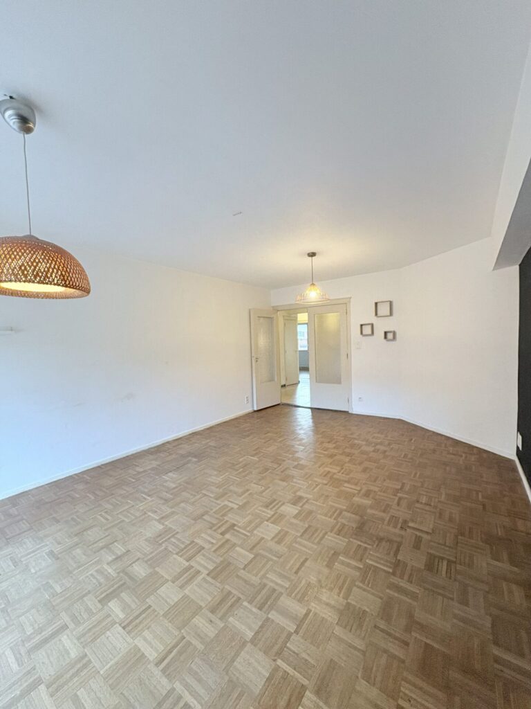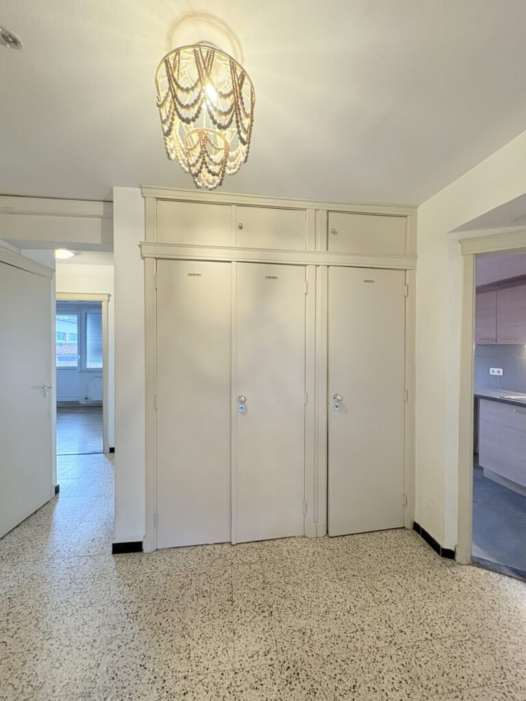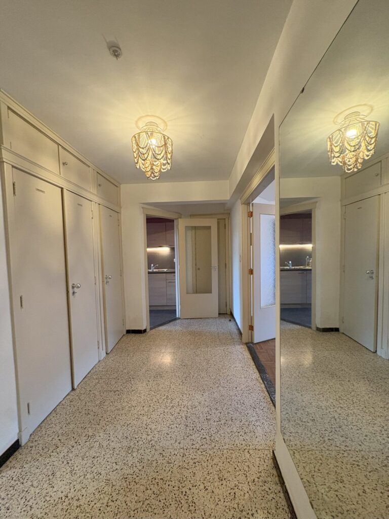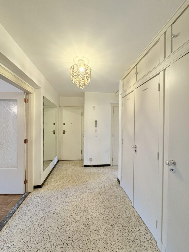 Situé dans un immeuble datant de 1964, cet appartement spacieux et lumineux se compose d’un beau hall d’entrée avec rangements, d’un vaste séjour/salle à manger baigné de lumière grâce à de grandes fenêtres, et d’une cuisine équipée séparée avec accès à un grand balcon s’étendant sur toute la longueur jusqu’aux chambres.