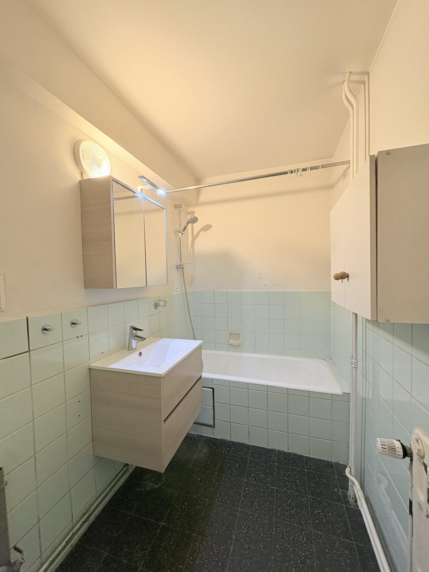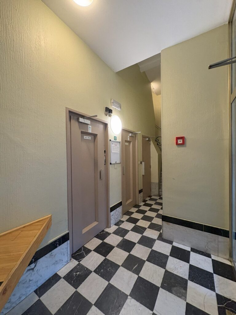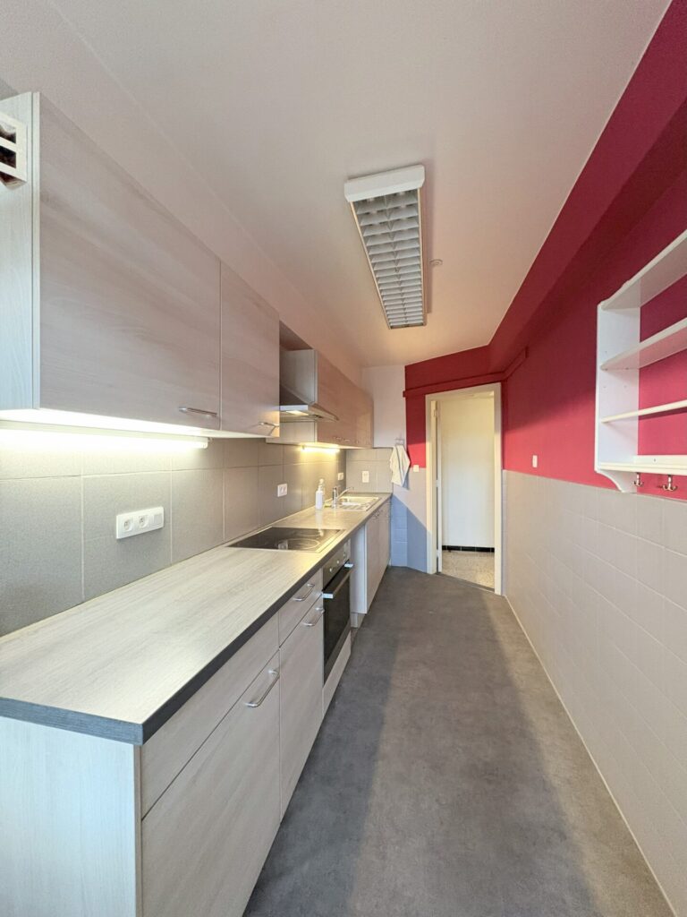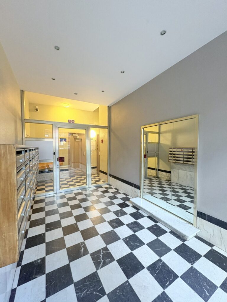 Situé dans un immeuble datant de 1964, cet appartement spacieux et lumineux se compose d’un beau hall d’entrée avec rangements, d’un vaste séjour/salle à manger baigné de lumière grâce à de grandes fenêtres, et d’une cuisine équipée séparée avec accès à un grand balcon s’étendant sur toute la longueur jusqu’aux chambres.